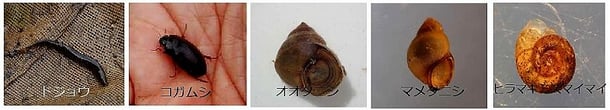 両生類、魚類、甲殻類、クモ類、昆虫類、貝類等