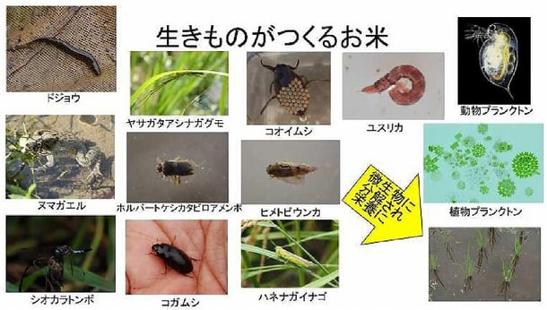 また、害虫、天敵以外にも多くの種が確認されました。これらはすべて死骸となり、微生物に分解されイネに栄養分として吸収されます。ところが、農薬を使用するとこれらの生物は死滅し、さらには分解者である微生物までが死滅します。