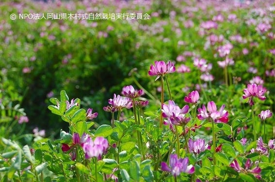 種を蒔かないのに自生するレンゲソウ。地中の微生物たちが、レンゲ根粒菌を固定したくて呼んだと思われます。そこへ放ったミツバチ達は元気に分蜂し、私たちはハチミツを分けてもらいました。