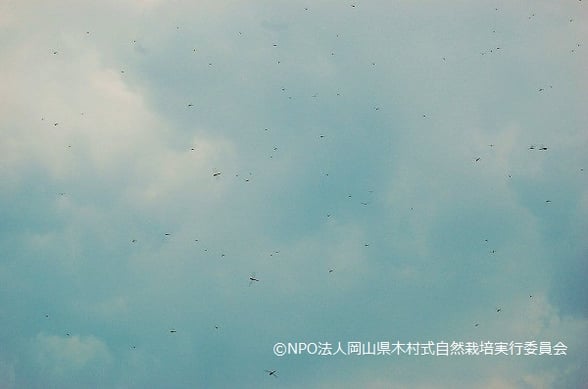 画面が汚れているように見えるこの小さな黒い点々…何だかわかりますか?赤トンボの大群なんです!